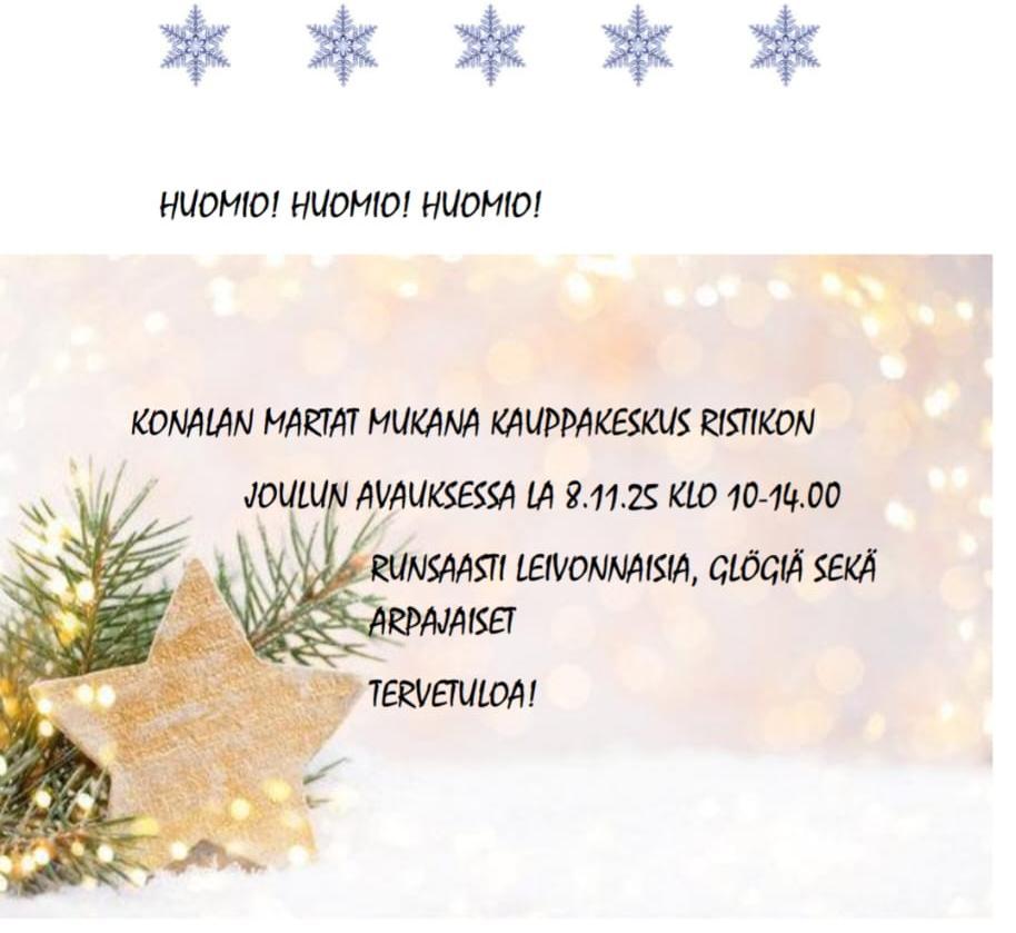 Konalan Martat (jotka kokoontuvat Pitäjänmäellä) tiedottavat: