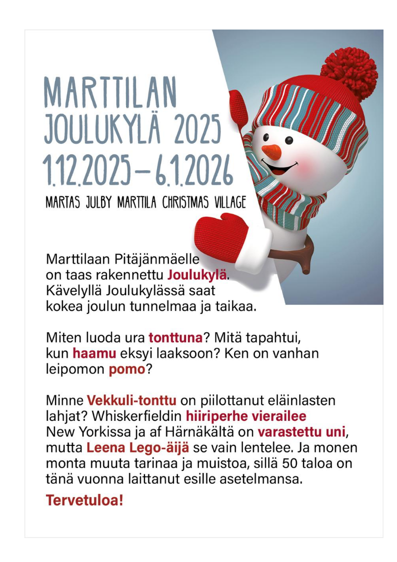 Marttilan joulukylä 1.12. 2025 - 6.1.2026