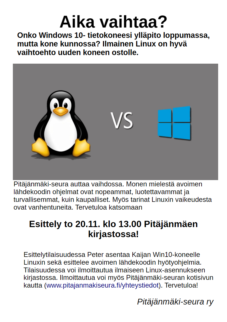 Järjestäjänä Kyläkirkko ja Pitäjänmäki-seura.