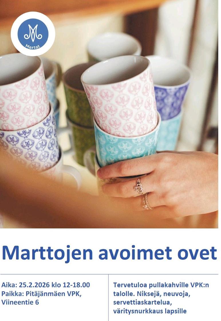 Tervetuloa osaksi iloista ja tekevää Martta-yhteisöä. Olemme matalan kynnyksen yhdistys, tule sellaisena kuin olet! Jokaiselle löytyy oma tapansa olla Martta! Kokoonnumme maanantaisin Pitäjänmäen…